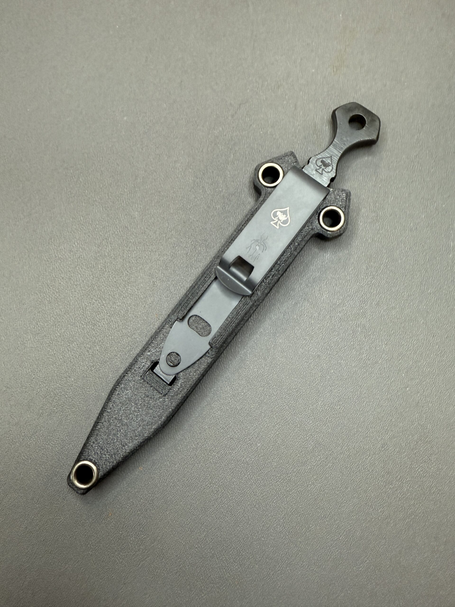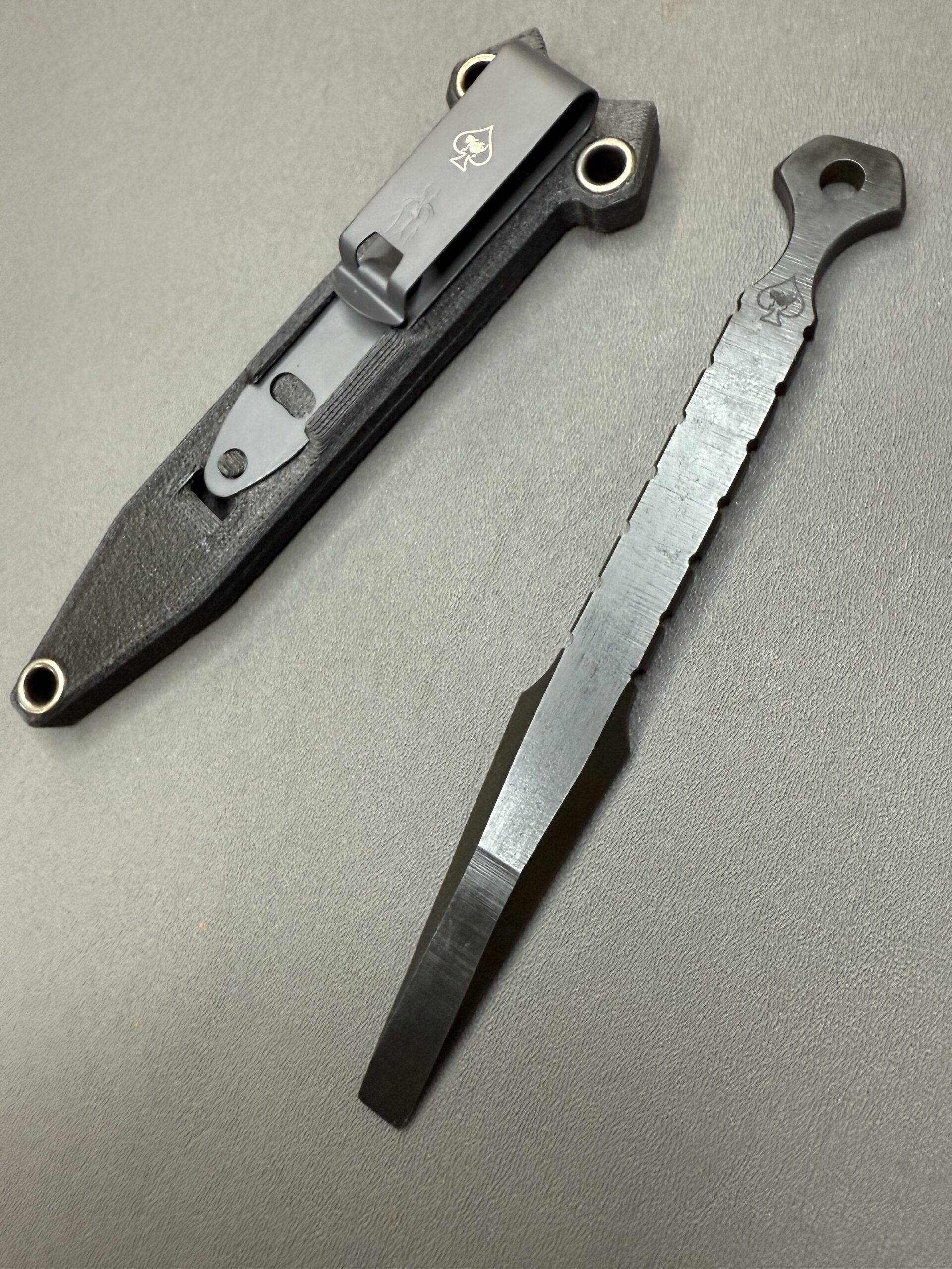 The SOT-PB Pry Bar is a tool than can be carried anywhere you can take a flat head screw driver. TSA may even let you take it with you on a flight since it is 6.5″ long and is not a knife or sharp object. The “Case” is designed to go along the belt line with the pocket clip, but if you want to put a belt clip on it, there are a lot of options for its 1″ wide hole spacing. The steel is cut and hand ground here in the USA. The “Case” is designed, printed, and assembled in our shop here in Colorado, USA from Carbon Fiber/ Nylon 12. This tool is priced to be used and enjoyed. Just keep a little oil on it and you will be good to go. We know you will love it. Enjoy!